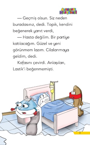 — Geçmiş olsun. Siz neden buradasınız, dedi. Topik, kendini beğenerek yanıt verdi, — Hasta değilim. Bir partiye katılacağım. Güzel ve yeni görünmem lazım. Cilalanmaya geldim, dedi. Kafasını çevirdi. Anlaşılan, Lastik’i beğenmemişti. 9