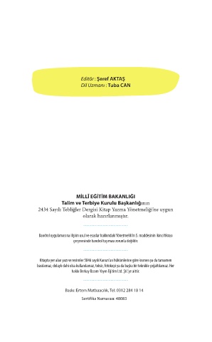 Kitapta yer alan yazı ve resimler 5846 sayılı Kanun’un hükümlerine göre kısmen ya da tamamen