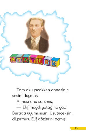 Tam okuyacakken annesinin sesini duymuş. Annesi onu sarsmış, — Elif, haydi yatağına yat. Burada uyumuşsun. Üşüteceksin, diyormuş. Elif gözlerini açmış, 15