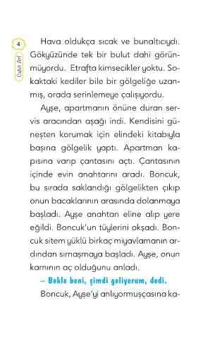 eğildi. Boncuk’un tüylerini okşadı. Bon-