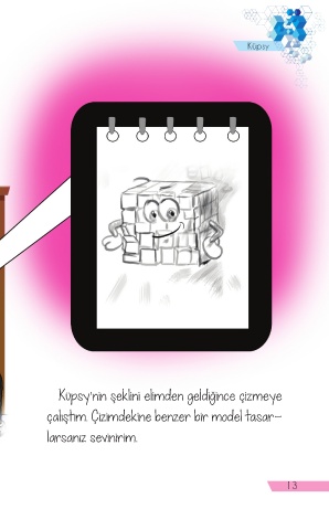 Küpsy Küpsy’nin şeklini elimden geldiğince çizmeye çalıştım. Çizimdekine benzer bir model tasar- larsanız sevinirim. 13