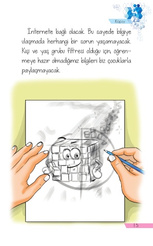 Küpsy İnternete bağlı olacak. Bu sayede bilgiye ulaşmada herhangi bir sorun yaşamayacak. Kişi ve yaş grubu filtresi olduğu için, öğren- meye hazır olmadığımız bilgileri biz çocuklarla paylaşmayacak. 15