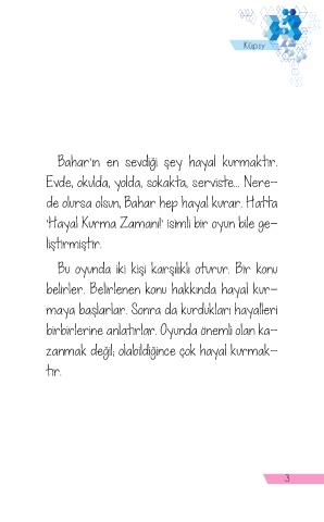 Bahar’ın en sevdiği şey hayal kurmaktır.