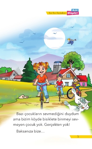 Bisi Bisi Pedalları Bazı çocukların sevmediğini duydum ama bizim köyde bisiklete binmeyi sev- meyen çocuk yok. Gerçekten yok! Baksanıza bize… 5