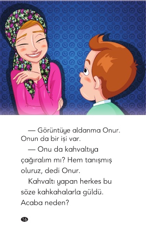 — Görüntüye aldanma Onur. Onun da bir işi var. — Onu da kahvaltıya çağıralım mı? Hem tanışmış oluruz, dedi Onur. Kahvaltı yapan herkes bu söze kahkahalarla güldü. Acaba neden? 16