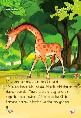 Yavru Zürafa O sabah ormanda bir farklılık vardı. Ortalıkta kimsecikler yoktu. Neşeli kahkahalar duyulmuyordu. Yavru Zürafa boynunu bir sağa bir sola çevirdi. Sol tarafta büyük bir kargaşa gördü. Merakla kalabalığın yanına gitti. Şair Anne’den 11