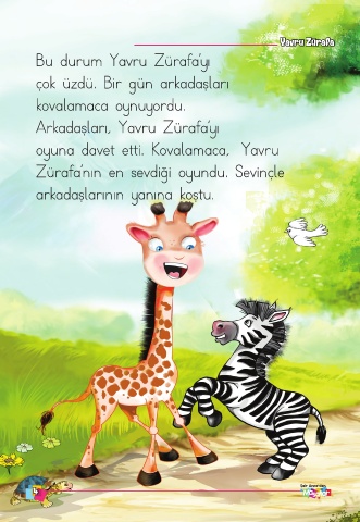 Yavru Zürafa Bu durum Yavru Zürafa’yı çok üzdü. Bir gün arkadaşları kovalamaca oynuyordu. Arkadaşları, Yavru Zürafa’yı oyuna davet etti. Kovalamaca, Yavru Zürafa’nın en sevdiği oyundu. Sevinçle arkadaşlarının yanına koştu. 4 Şair Anne’den