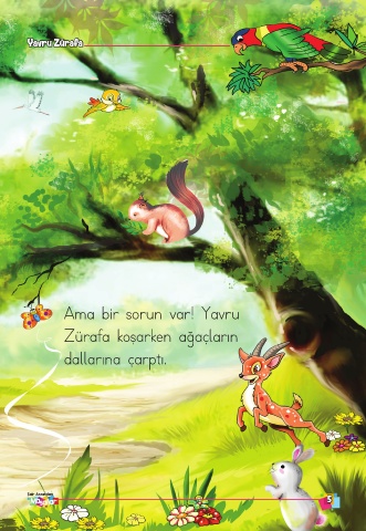 Yavru Zürafa Ama bir sorun var! Yavru Zürafa koşarken ağaçların dallarına çarptı. Şair Anne’den 5