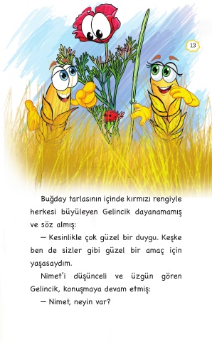 Buğday tarlasının içinde kırmızı rengiyle