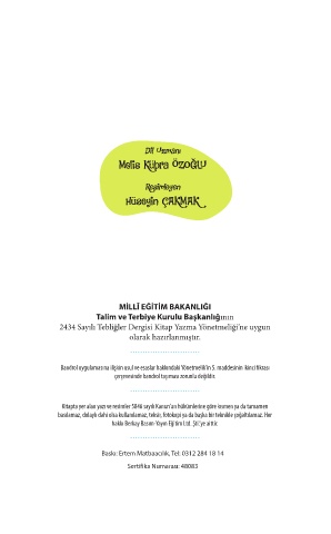 Kitapta yer alan yazı ve resimler 5846 sayılı Kanun’un hükümlerine göre kısmen ya da tamamen