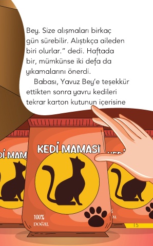 Bey. Size alışmaları birkaç gün sürebilir. Alıştıkça aileden biri olurlar.” dedi. Haftada bir, mümkünse iki defa da yıkamalarını önerdi. Babası, Yavuz Bey’e teşekkür ettikten sonra yavru kedileri tekrar karton kutunun içerisine 15