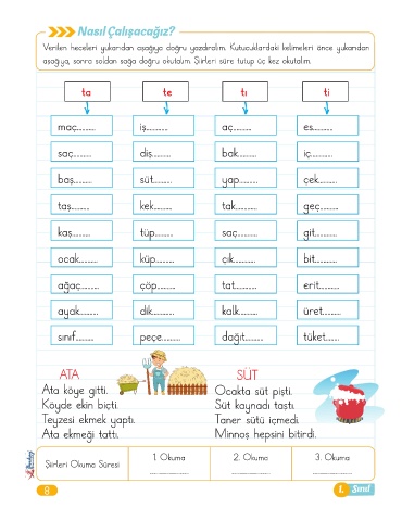 aşağıya, sonra soldan sağa doğru okutalım. Şiirleri süre tutup üç kez okutalım.