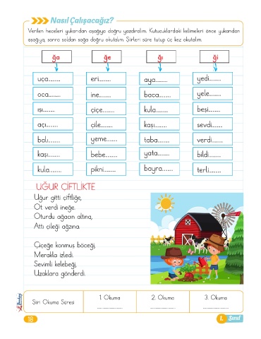 aşağıya, sonra soldan sağa doğru okutalım. Şiirleri süre tutup üç kez okutalım.