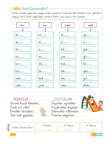 aşağıya, sonra soldan sağa doğru okutalım. Şiirleri süre tutup üç kez okutalım.