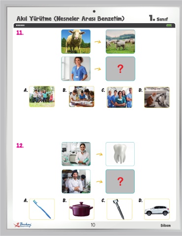 Akıl Yürütme (Nesneler Arası Benzetim) 1. Sınıf 11. A. B. C. D. 12. A. B. C. D. 10 Bilsem