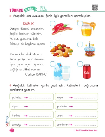 Aşağıdaki kelimeler yanlış yazılmıştır. Kelimelerin doğrusunu