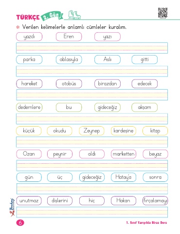 Verilen kelimelerle anlamlı cümleler kuralım.