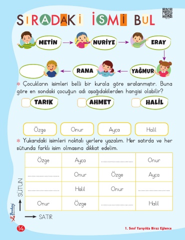 Çocukların isimleri belli bir kurala göre sıralanmıştır. Buna