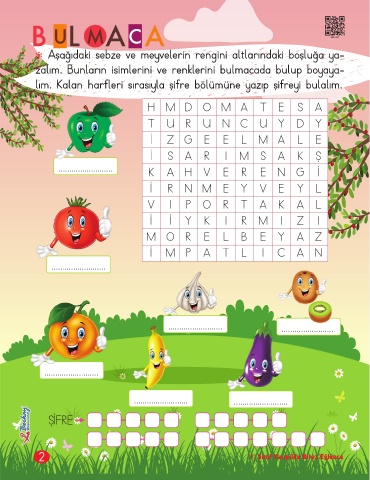 zalım. Bunların isimlerini ve renklerini bulmacada bulup boyaya-