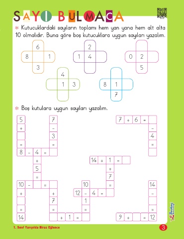 10 olmalıdır. Buna göre boş kutucuklara uygun sayıları yazalım.
