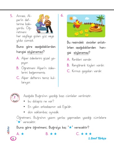 Buna göre öğretmeni, Buğra’ya kaç "★” verecektir?