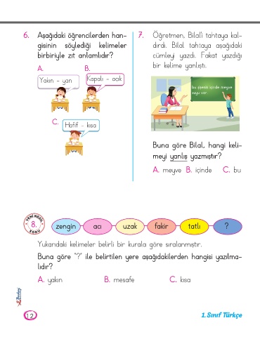 6. Aşağıdaki öğrencilerden han- 7. Öğretmen, Bilal’i tahtaya kal-