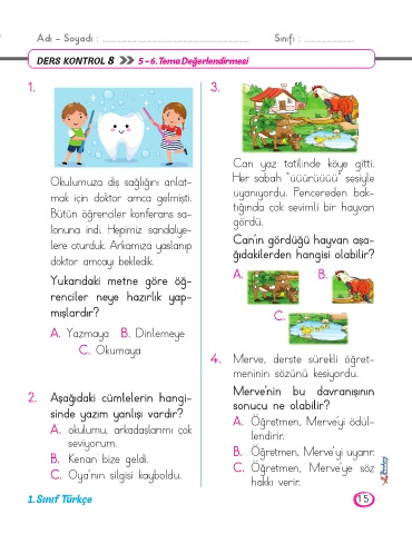 B. Kenan bize geldi. B. Öğretmen, Merve’ yi uyar›r.