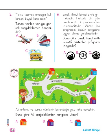 5. “Yolcu taşımak amacıyla kul- 6. Emel, ilkokul birinci sınıfa git-