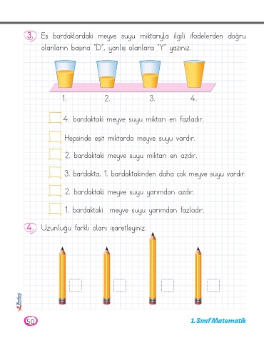 3. Eş bardaklardaki meyve suyu miktarıyla ilgili ifadelerden doğru