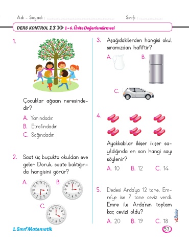 DERS KONTROL 13 1 - 6 . Ünite Değerlendirmesi