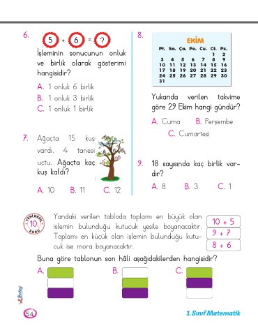 6. 5 + 6 = ? 8. EKİM