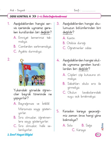 Adı - Soyadı : ....................................................................................................... Sınıfı : ...................................