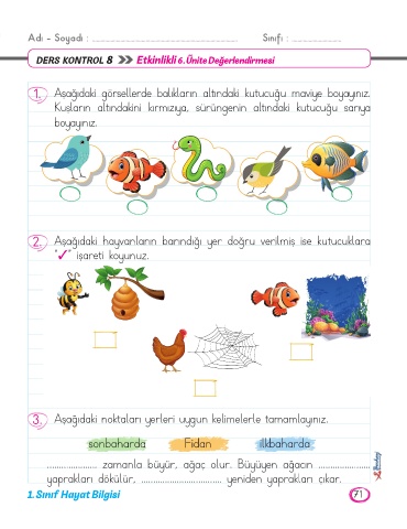 1. Aşağıdaki görsellerde balıkların altındaki kutucuğu maviye boyayınız.