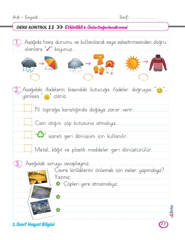 1. Aşağıda hava durumu ve kullanılacak eşya eşleştirmesinden doğru