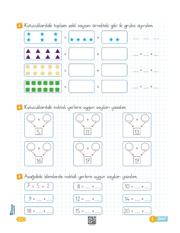 3 Kutucuklardaki toplam şekil sayısını örnekteki gibi iki gruba ayıralım.