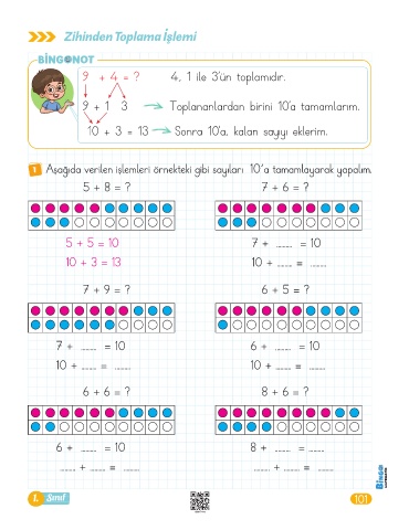 1 Aşağıda verilen işlemleri örnekteki gibi sayıları 10’a tamamlayarak yapalım.