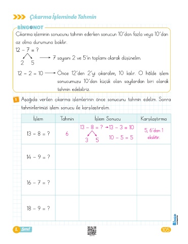 Çıkarma işleminin sonucunu tahmin ederken sonucun 10’dan fazla veya 10’dan
