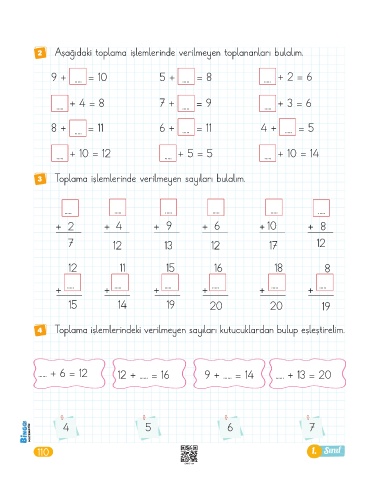4 Toplama işlemlerindeki verilmeyen sayıları kutucuklardan bulup eşleştirelim.