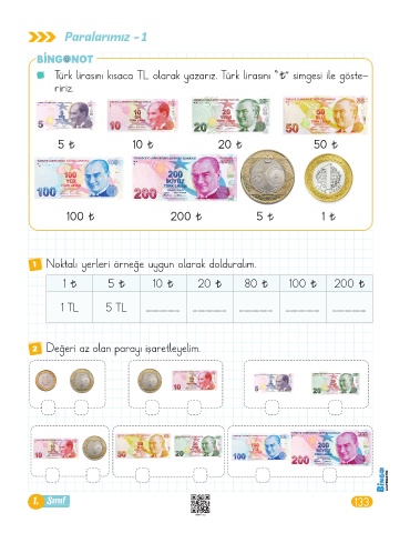 2 Değeri az olan parayı işaretleyelim.