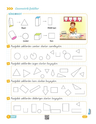 3 Aşağıdaki şekillerden kare olanları boyayalım.