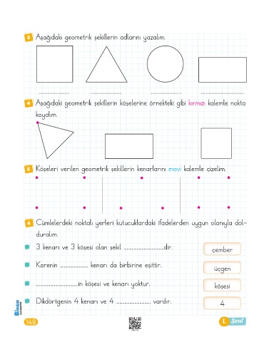 5 Köşeleri verilen geometrik şekillerin kenarlarını mavi kalemle çizelim.