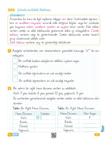 verileri çetele ve sıklık tablosunda göstererek daha iyi anlayabiliriz. Çetele