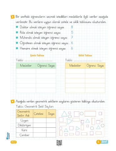 4 Aşağıda verilen geometrik şekillerin sayılarını gösteren tabloyu oluşturalım.