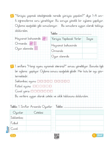 6 "Yürüyüş yapmak istediğimizde nerede yürüyüş yapalım?” diye 1-A sını-