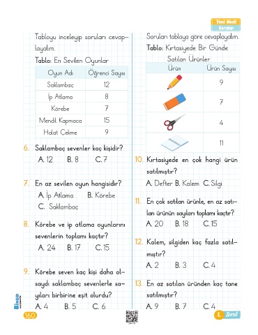 saydı saklambaç sevenlerle sa- 13. En az satılan üründen kaç tane