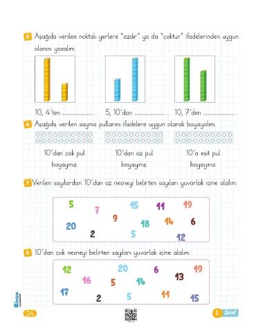6 Aşağıda verilen sayma pullarını ifadelere uygun olarak boyayalım.