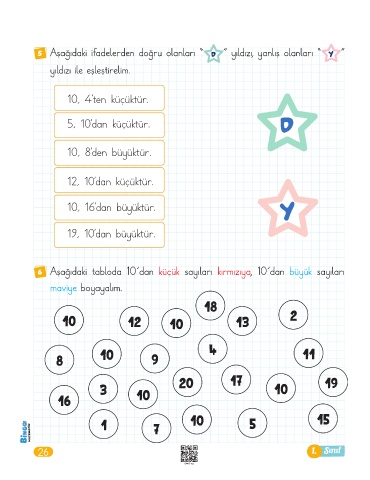 6 Aşağıdaki tabloda 10’dan küçük sayıları kırmızıya, 10’dan büyük sayıları