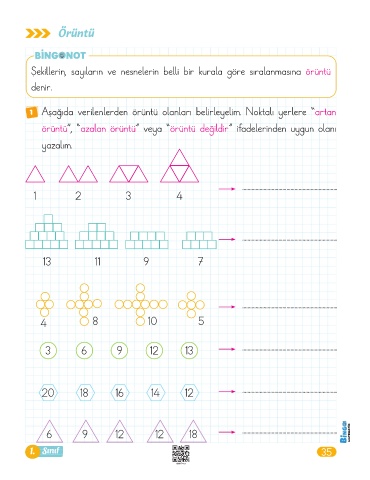 1 Aşağıda verilenlerden örüntü olanları belirleyelim. Noktalı yerlere "artan