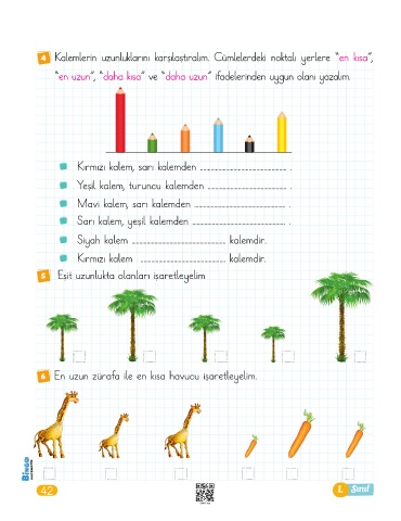 4 Kalemlerin uzunluklarını karşılaştıralım. Cümlelerdeki noktalı yerlere "en kısa”,