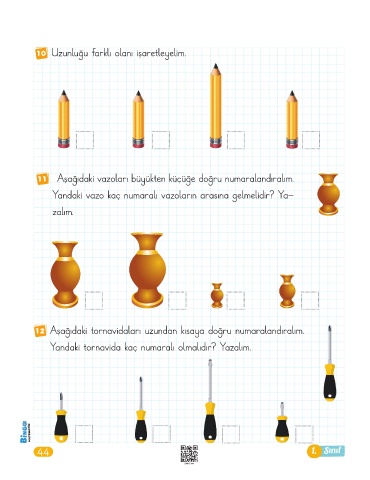 12 Aşağıdaki tornavidaları uzundan kısaya doğru numaralandıralım.